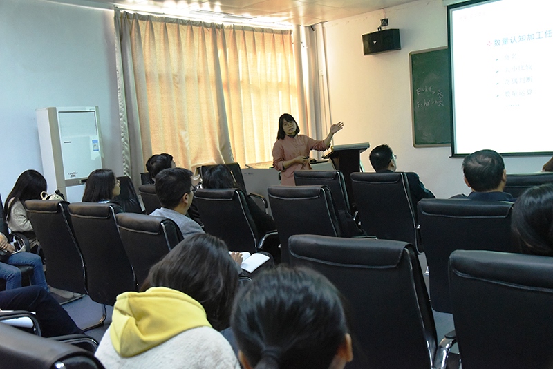 人文社科学院博士刘地秀报告了科研成果“The Neural Mechanism of Number Line Bisection:A fMRI Study”,介绍了通过功能磁共振成像(fMRI)技术在神经层面探讨健康成人在完成数字线切分认知任务时与物理线切分在神经基础上的共性和特性,以揭示数量-空间交互的神经机制。刘地秀博士在华南师范大学获心理学博士,主持国家自然科学基金一项。