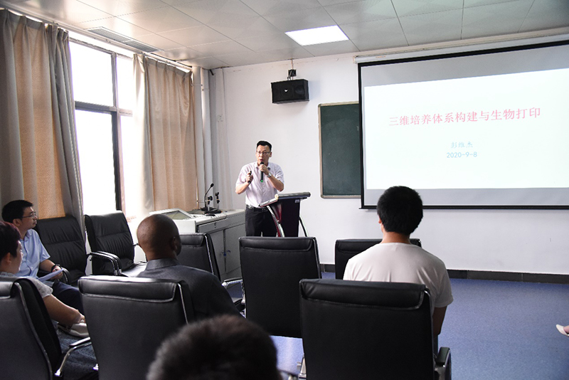彭维杰以《三维培养体系构建与生物打印》为题,以生动浅显的语言详细讲解了组织工程中三维培养体系的概念、相对于二维培养的优点及主要构建方式,并进一步阐述了生物打印的意义、涉及的材料及其与三维培养体系的紧密关系。彭维杰的报告内容既有全面整体的把握,又有相关技术细节,让在场教师和同学受益匪浅。