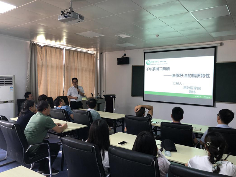 曾炜报告的题目是《千年茶树二两油——油茶籽油的脂质特性》。通过报告,大家对油茶籽油的物理化学性质、氧化稳定性、热稳定性、抗氧化能力及生物学功能特性有了更深入的认识。