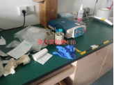 桌面脏乱、医疗废物垃圾桶里有水 |