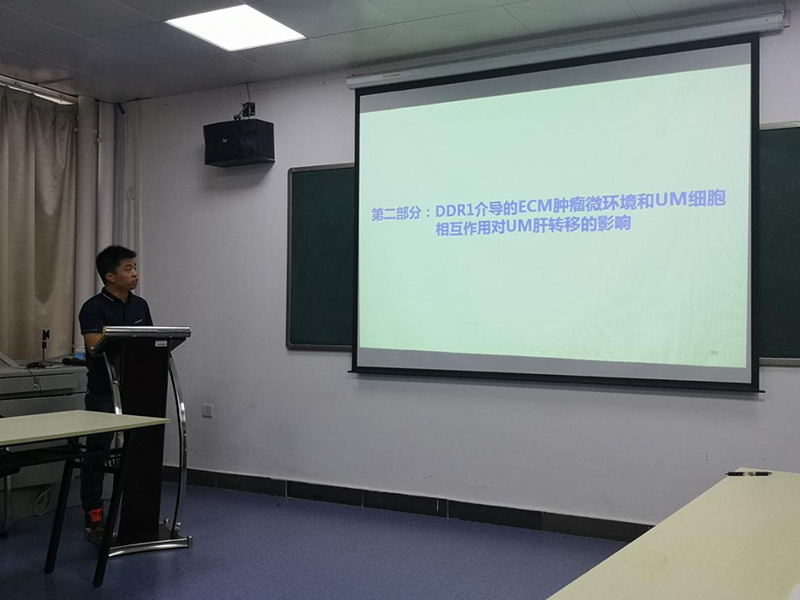 戴伟以《肝星形细胞分泌 collagen I激活盘状结构域受体DDR1-STAT3信号轴促进葡萄膜黑色素瘤肝转移的研究》为题,以盘状结构域受体1(DDR1)为切入点,深入浅出地阐述肝脏定向转移性定植的分子学机制,为临床治疗转移性UM提供了潜在的靶点。
