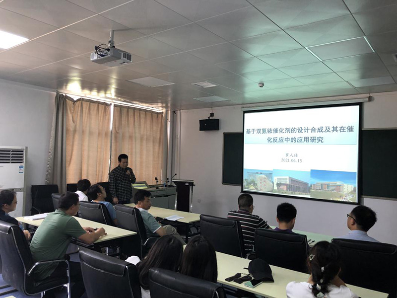 罗人仕报告的题目是《基于双氮铱催化剂的设计合成及其在催化反应中的应用》。双氮金属铱络合物是一类非常有效金属催化剂,该催化剂以水作为反应溶剂,具有很好的结构修饰性,在氢转移催化反应中具有催化效率高、选择性强、操作性与重现性好等特点。