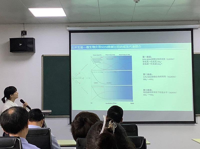 谢睿以“微生物对聚球藻来源有机物质的利用和转化研究”为题做了报告,谢睿指出,微生物与环境以及其他生物之间存在复杂的相互作用关系。微生物群落结构的改变,特殊种类微生物的相对丰度的升高或降低,以及某种次级代谢产物的积累,可能与特定疾病的发生相关。