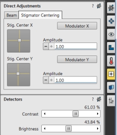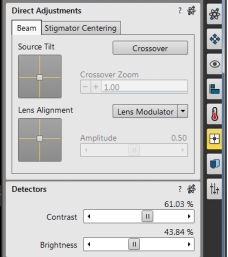 10、Shift+鼠标右键消像散。有像散图片在改变焦距的时候图像会有正交变形。消像散要先调节焦距至图片没有变形的时候开始。如果消像散时,图像呈左右、上下或有正交方向的晃动,需要在 Stigmator Centering里面做调试。调节方法与 Lens Alignment 相同。