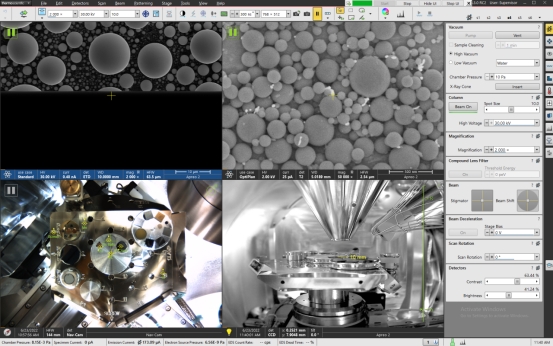 仪器应用:扫描电子显微镜(SEM)是利用二次电子和背散射电子信号,通过真空系统、电子束系统和成像系统获取被测样品本身的各种物理、化学性质的信息,如形貌、组成、晶体结构、电子结构和内部电场或磁场等的一种分析仪器,是形貌和成分分析领域极其重要的一种工具。