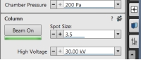 5、待真空度达到预定值,然后设定电镜的工作电压与电流,点击主界面中的Bean On。