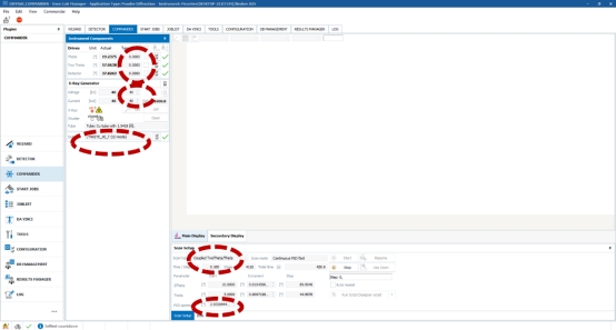 输入测量要求,选择coupled Twotheta/theta,设定扫描范围,扫描步长及每步停留时间。扫描步长通常0.02度是合适的。(下图中红色虚线框内数值和选项固定,参考输入,最好不要进行修改)